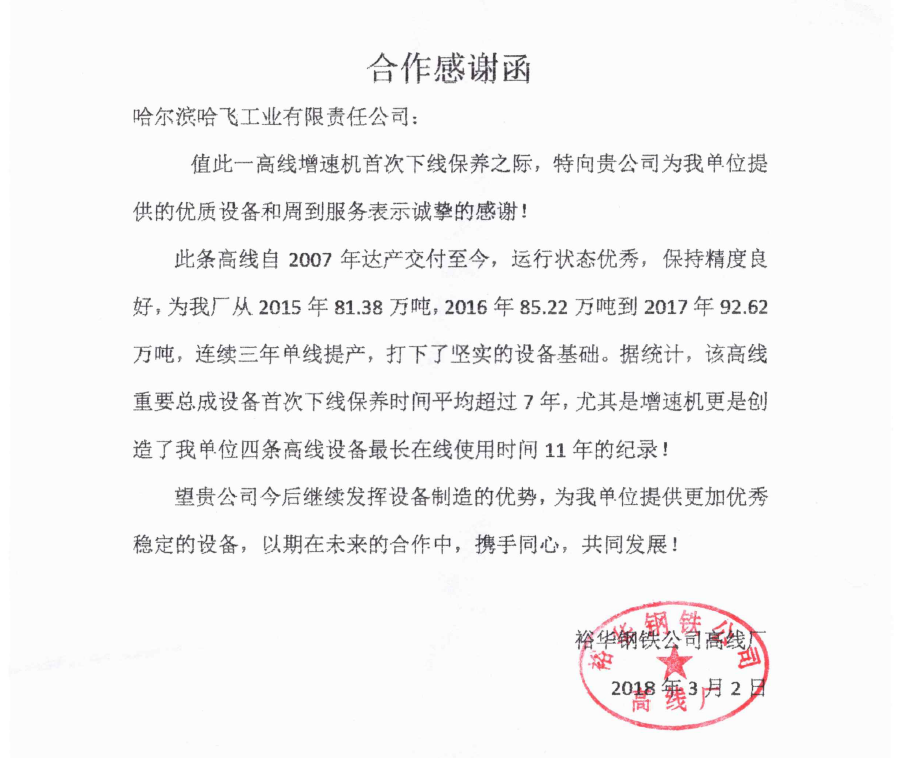 哈尔滨哈飞工业有限责任公司旗下的机电设备制造产业是目前国内规模大、专业的高速线材轧机和棒材轧机整机及备件的生产制造企业。公司现坐落于哈尔滨市平房区汽车零部件工业园B区,占地面积30000多平方米。现有员工近550人,其中具有中高级职称的研发及工程技术人员100余人。 公司曾获得冶金部授予的“高线轧机设备优单位”称号、国家技术进步二等奖等奖项,公司生产的十八项高线轧机重要部件通过了技术鉴定... +MORE